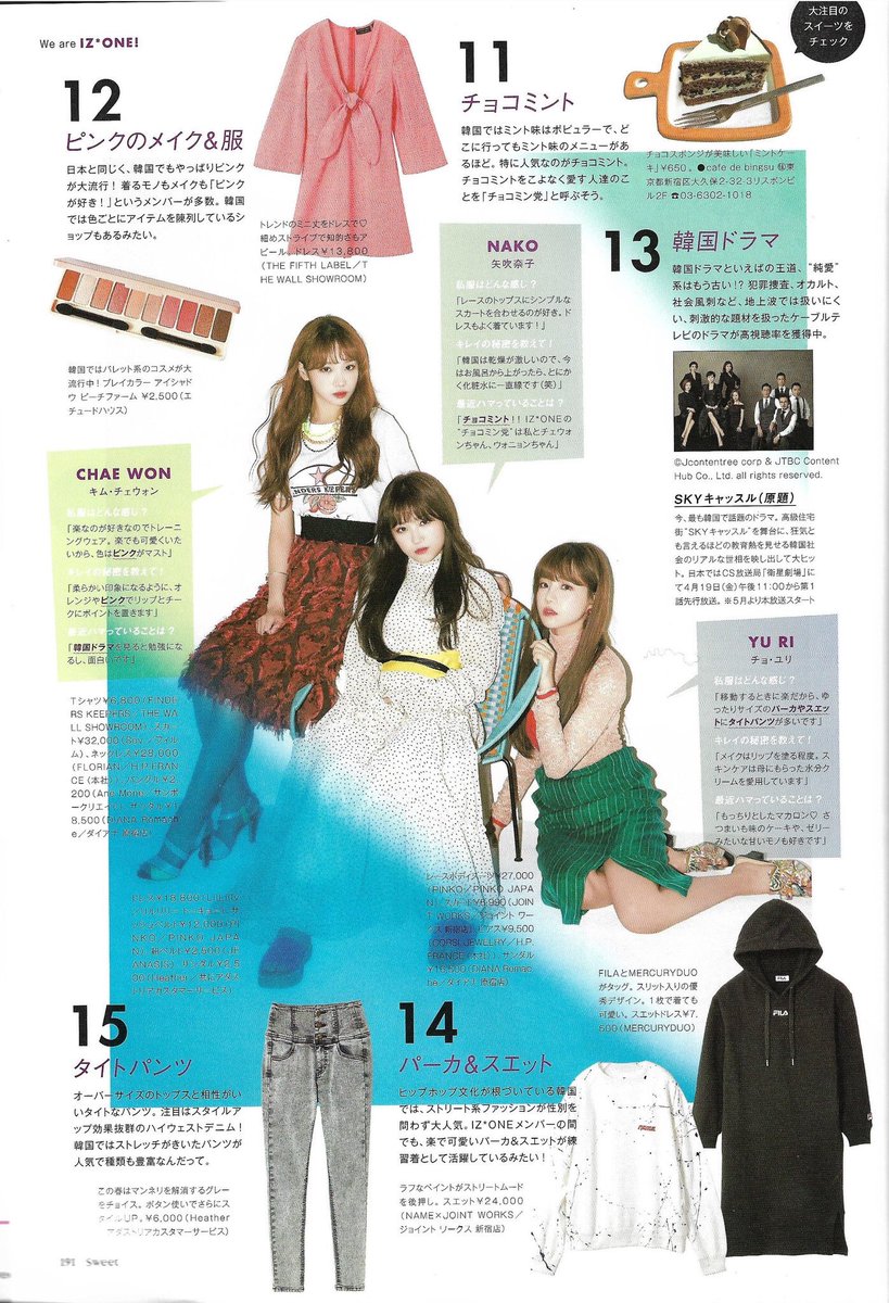 패션, 뷰티 잡지인 Sweet에 한국에서 유행하는 패션을 소개하는 아이즈원입니다. 물론, 컨셉은 핑계고 그냥 아이즈원을 소개하는 푸쉬의 일환으로 보시면 됩니다. 심지어 헤어와 메이크업을 제외하면 한국에서 유행하는 아이템은 그리 많지 않고, 조합은 전형적인 일본 스타일. 뭐, 이런 기획이 다 그렇긴 합니다만.